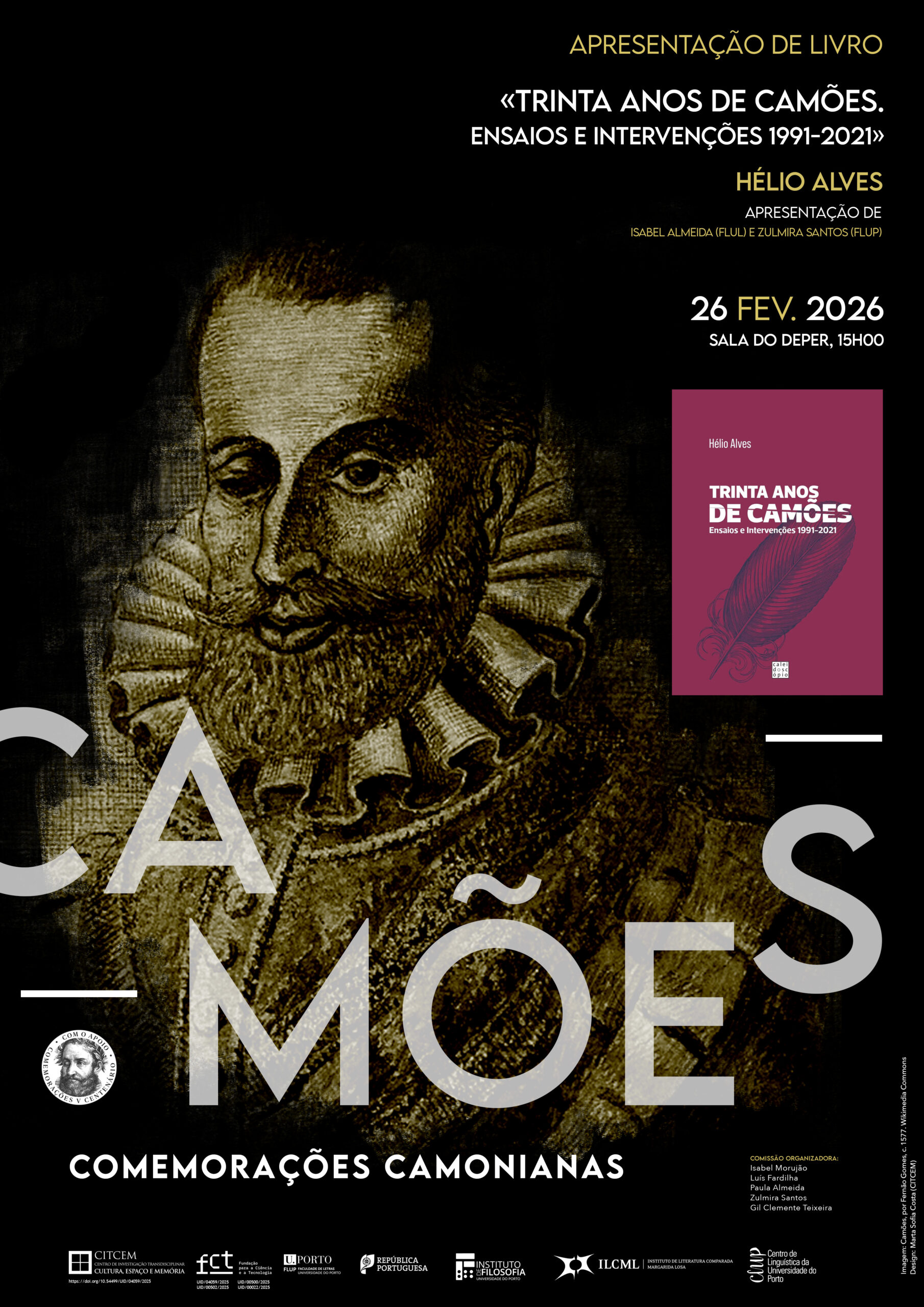 Realiza-se no dia 26 de fevereiro de 2026, pelas 15h00, na sala do Departamento de Estudos Portugueses e Românicos (DEPER) Faculdade de Letras da Universidade do Porto (FLUP), o lançamento do livro Trinta Anos de Camões. Ensaios e Intervenções 1991–2021, da autoria de Hélio Alves, com apresentação Isabel Almeida (Faculdade de Letras da Faculdade de Lisboa) e Zulmira Santos (FLUP).